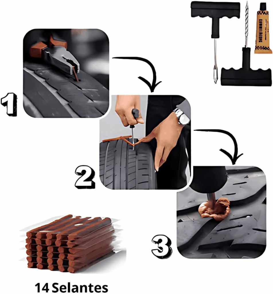 • Permite consertar o pneu sem precisar retirá-lo da roda, economizando tempo e esforço.